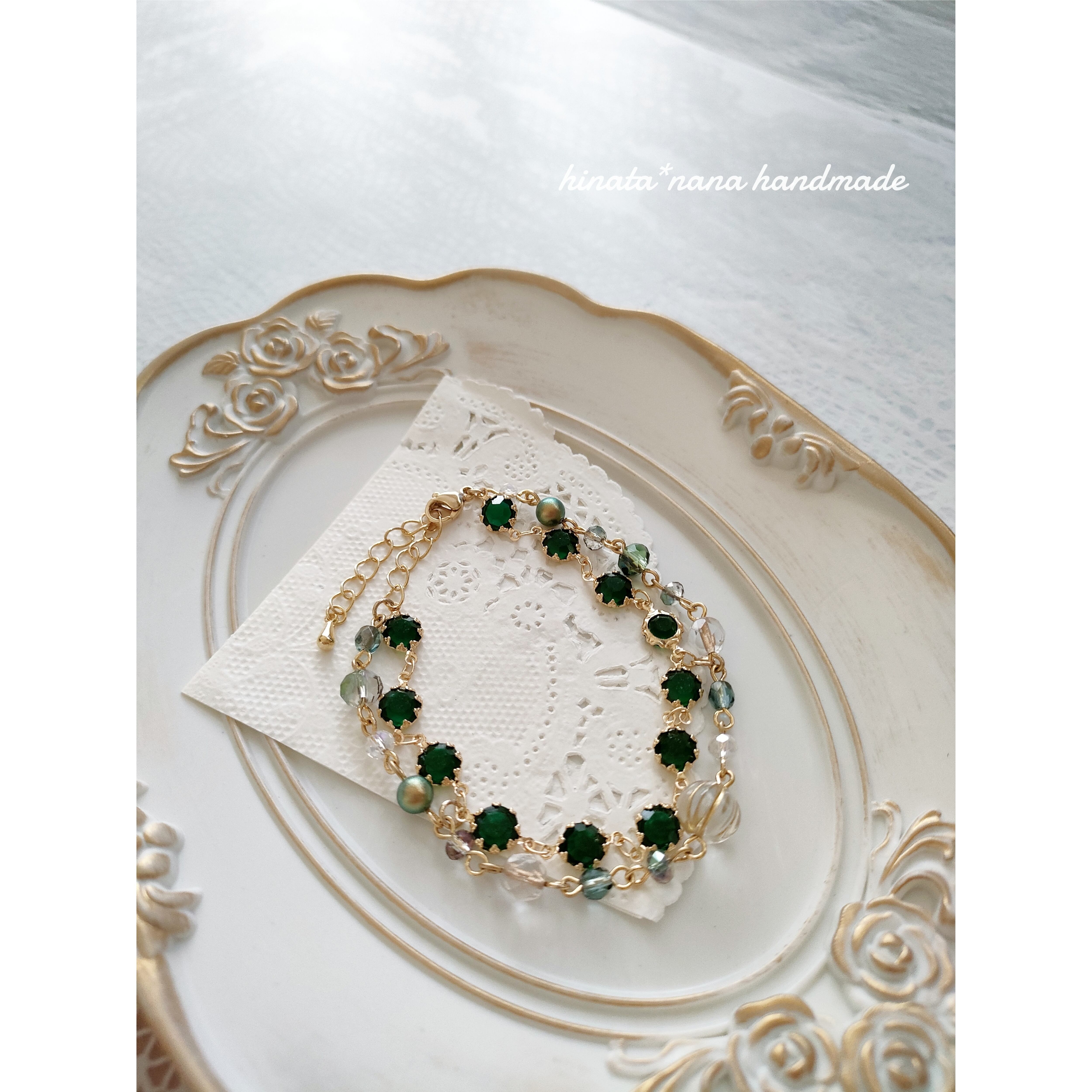 大きめチェコガラスの2連ブレスレット✩.*˚(グリーン系)