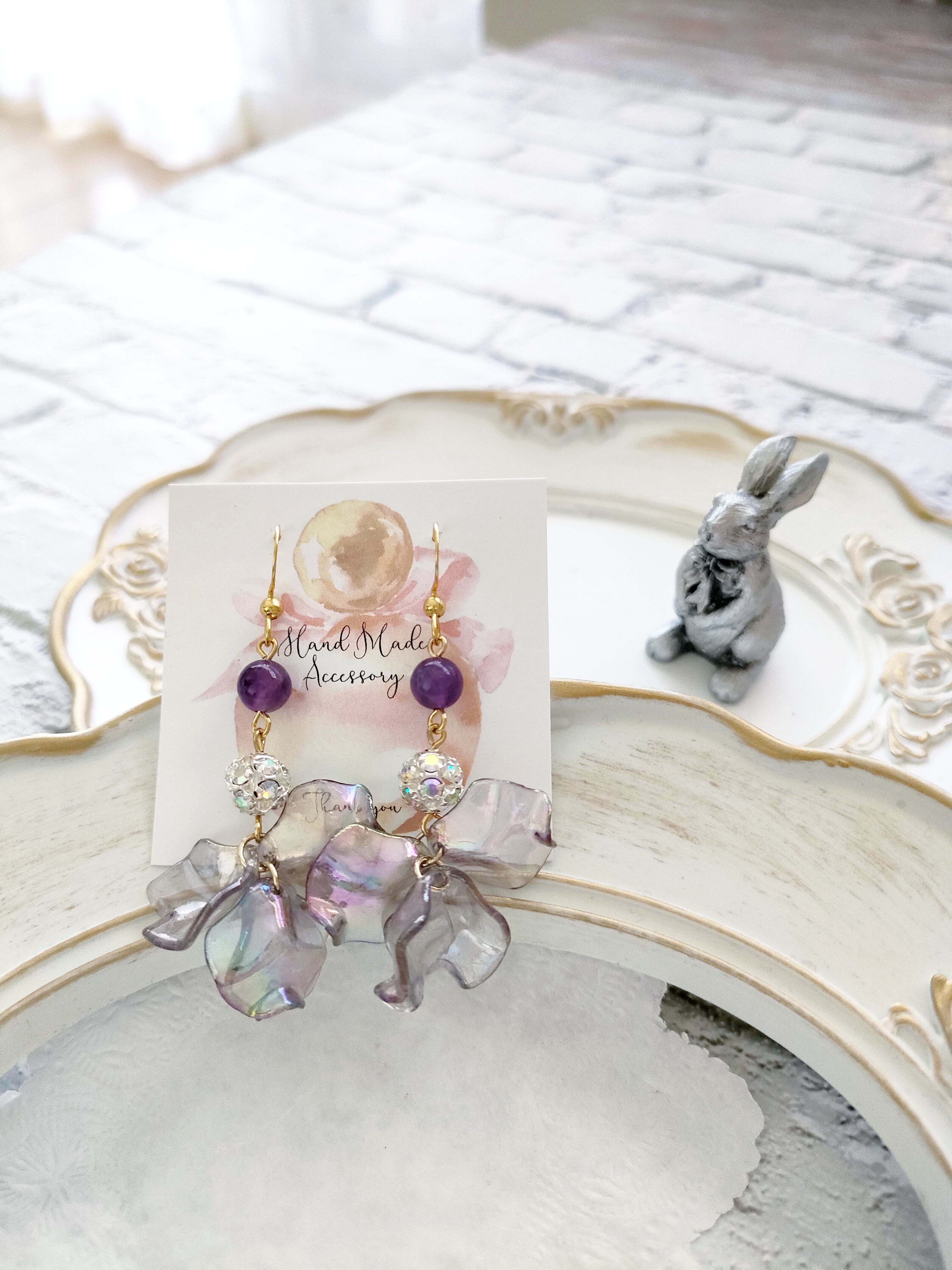 アメジスト 花びらサージカルステンレスピアス✩.*˚