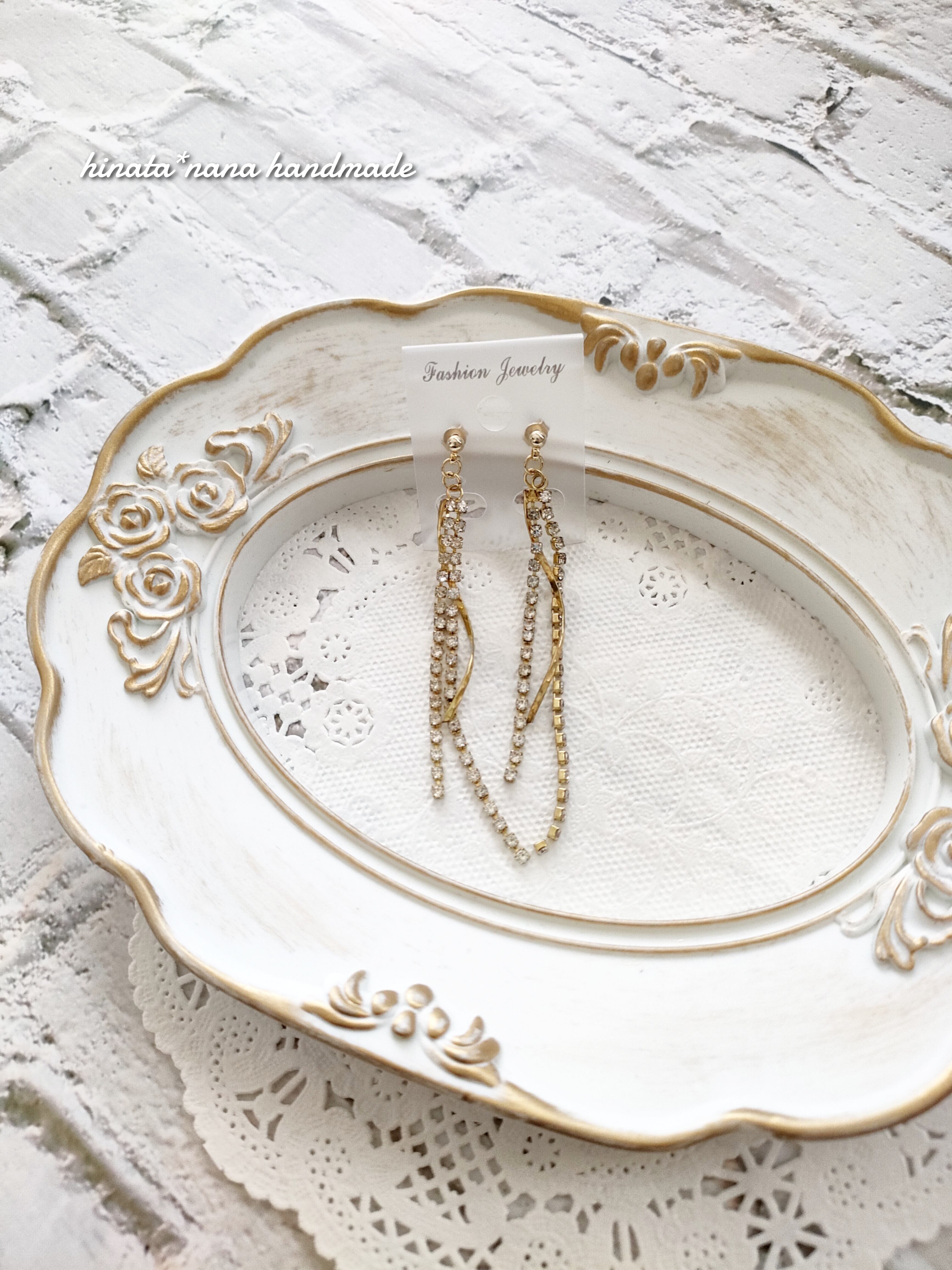 繊細なラインストーンチェーンとねじりパーツの