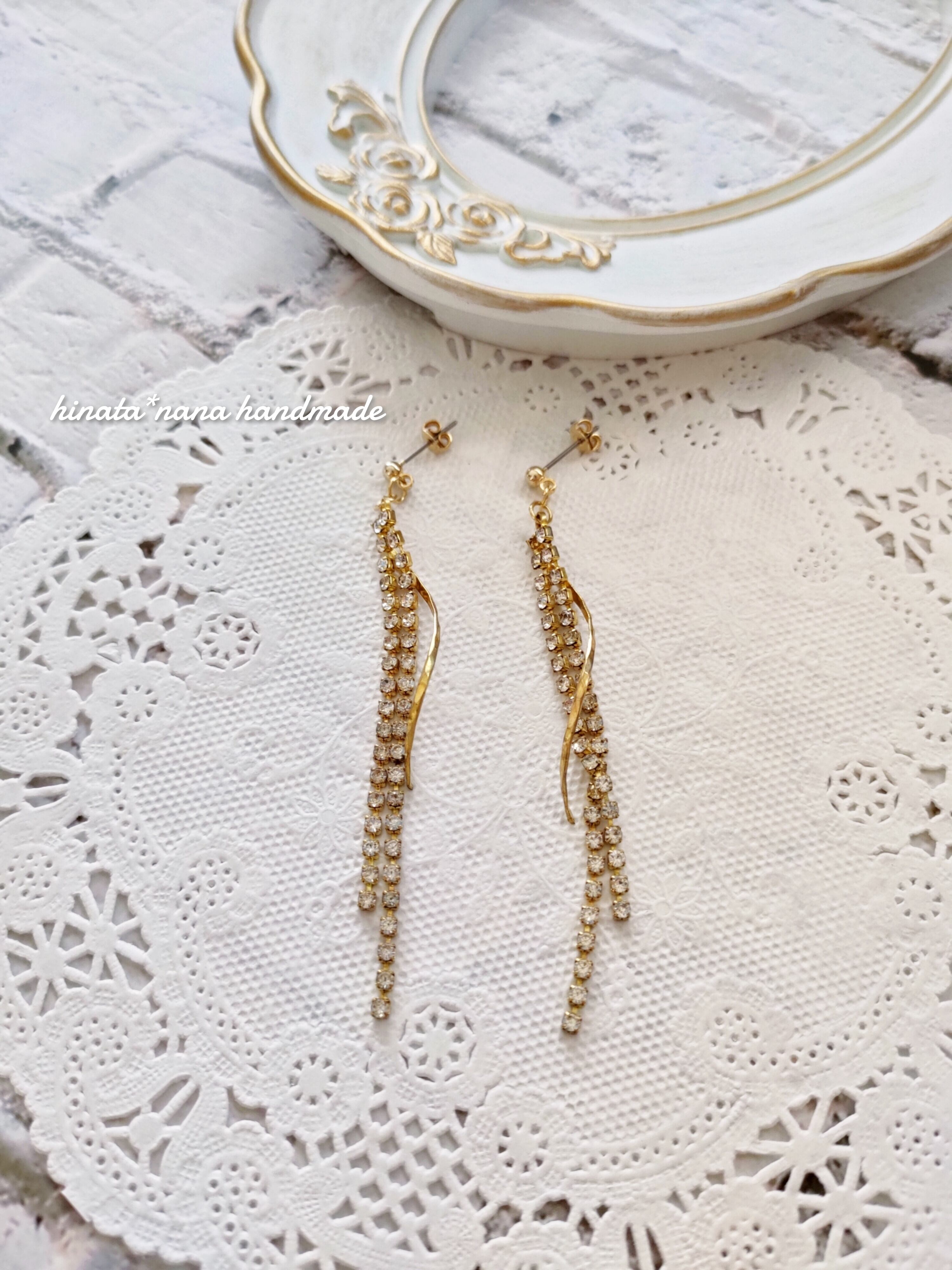高品質ラインストーンチェーン ロジウムキャッチピアス✩.*˚