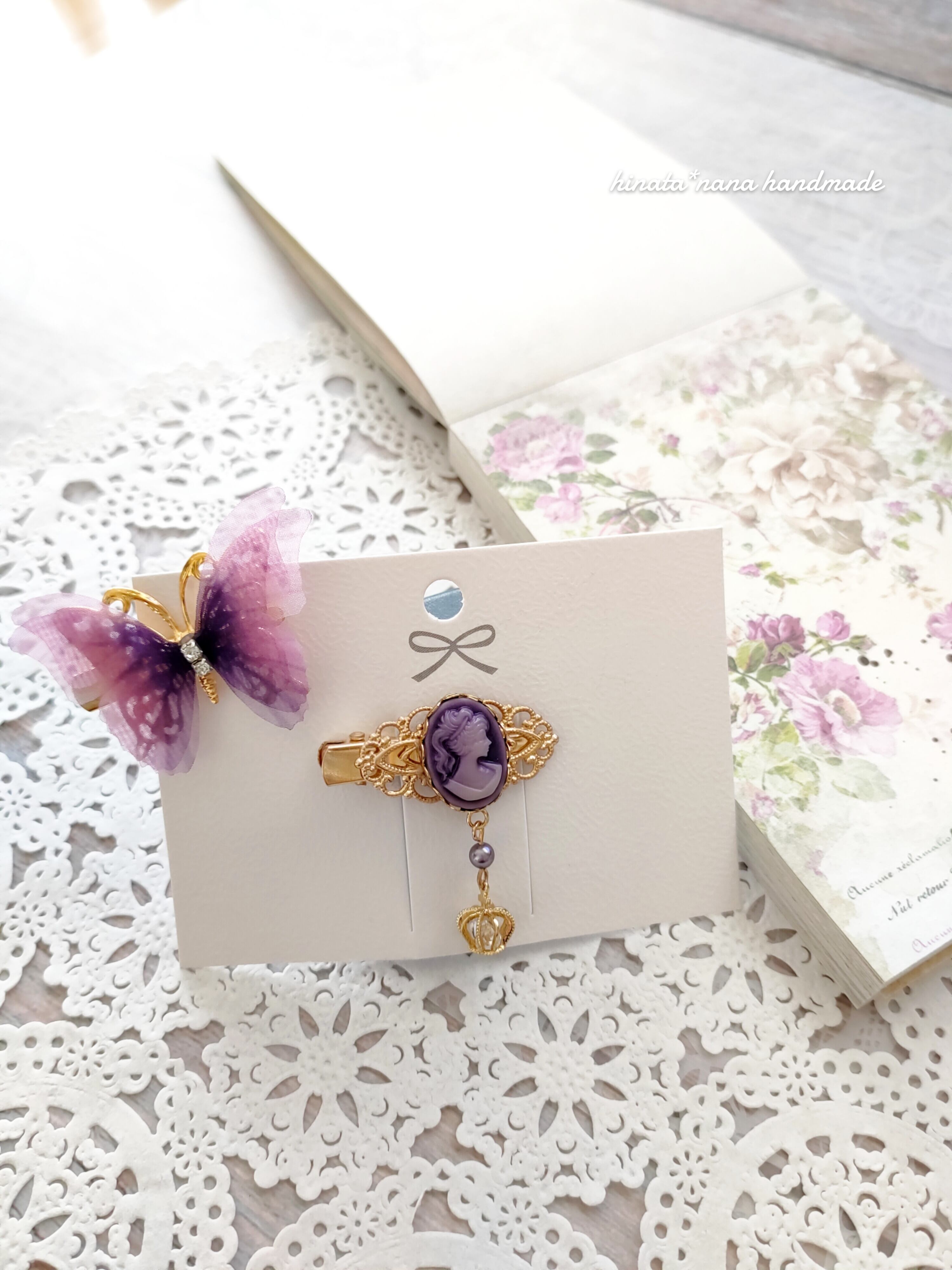 カメオ デコクリップセット(パープルカメオ&パープル蝶)