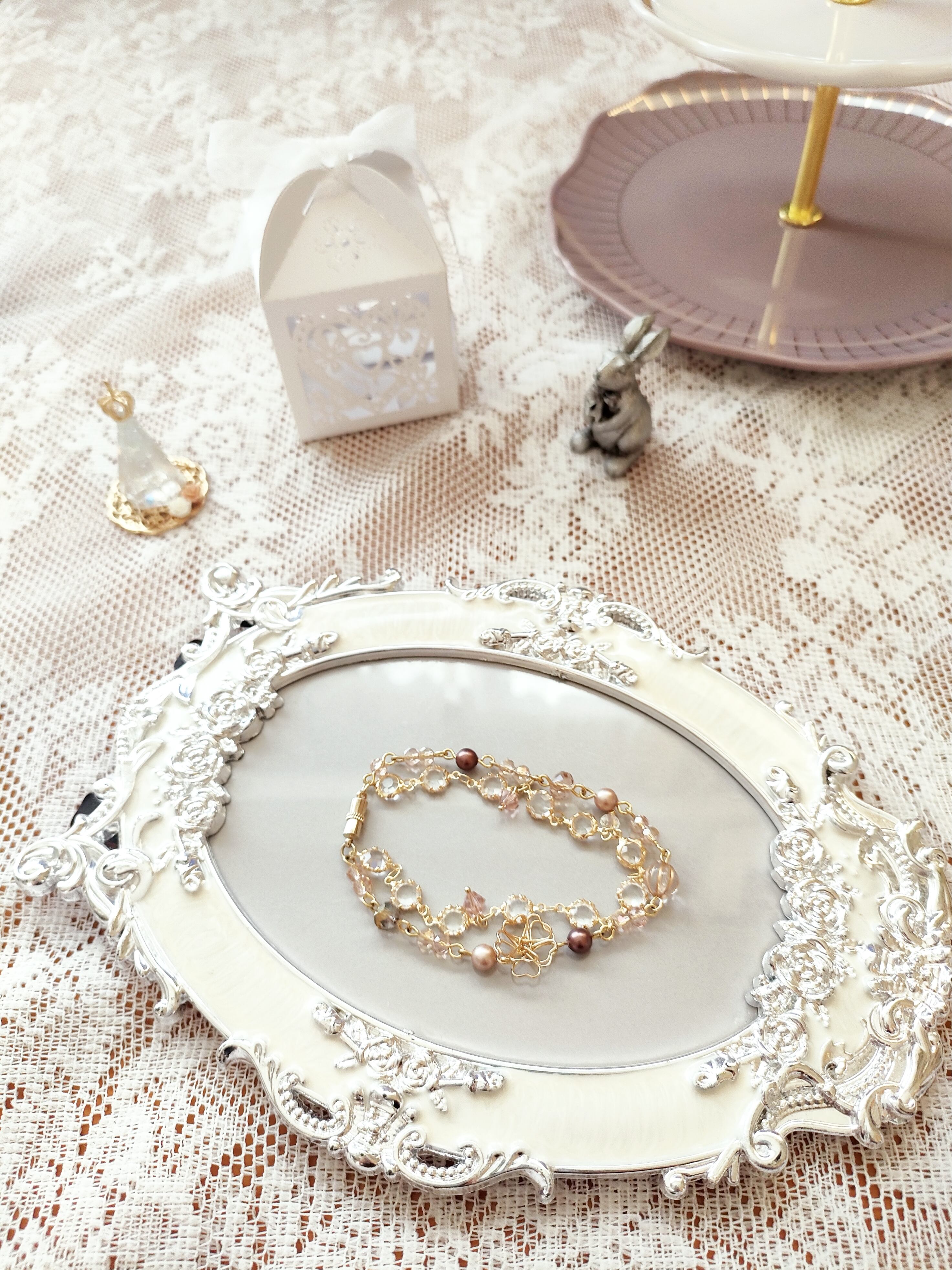 ・スワロフスキーお花パーツ二連ブレスレット